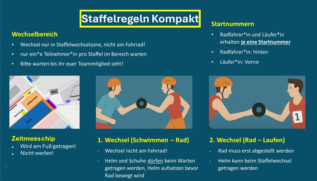 - 9:00 Uhr: für die Startgruppen von 9:30 bis 11:15 Uhr (Olympische Distanz)