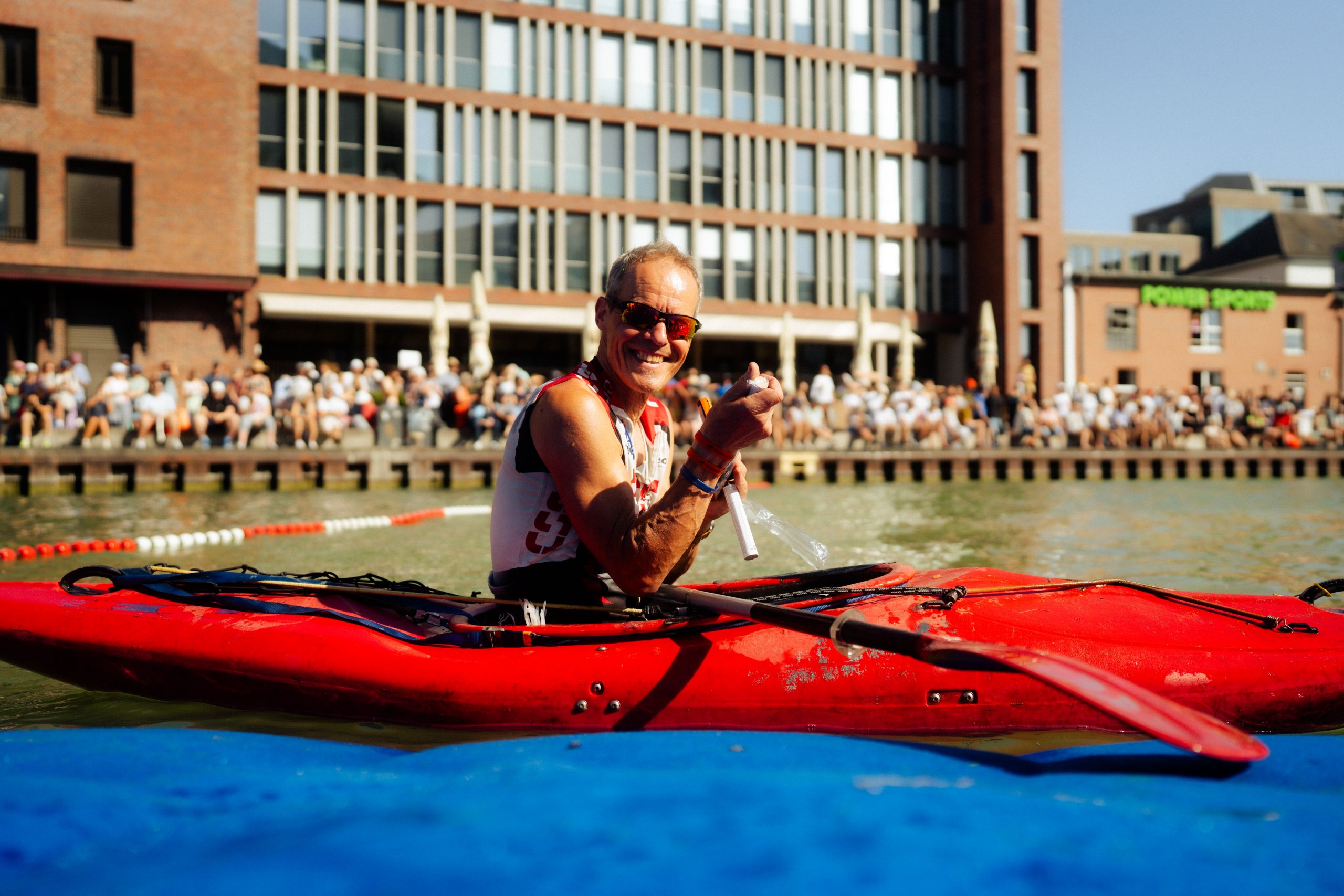 Der gemeinsame Start im offenen Wasser wird von begeisterten Fans begleitet, die jede Bewegung feiern und euch vom ersten Moment an tragen. Auf der Radstrecke könnt ihr – ob mit Rennrad, Handbike oder anderen angepassten Rädern – auf den langen Geraden Tempo aufnehmen und zeigen, was in euch steckt. Der anschließende Lauf- bzw. Rollkurs führt euch entlang der Kanalpromenade zurück Richtung Hafen.