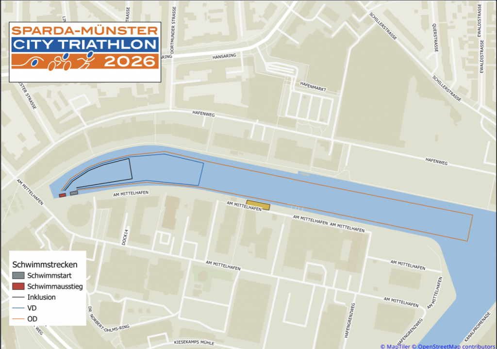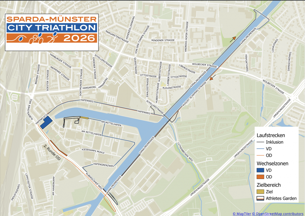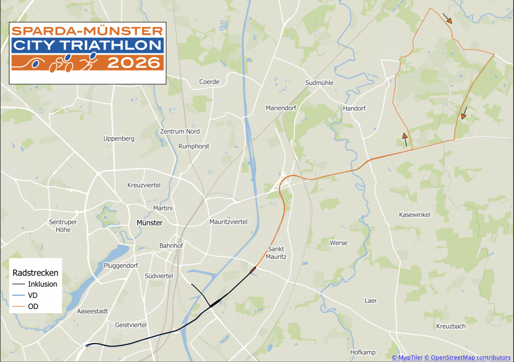 Hier findet ihr die Strecken für den Sparda Münster City Triathlon 2026.